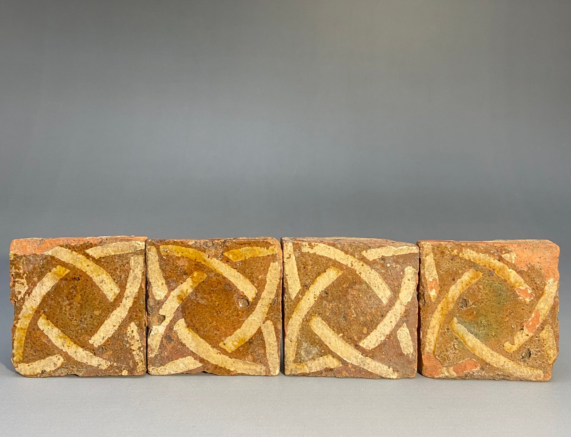 Quarter size tiles measure approximately 5cm to 6cm, and as a four piece format, make up the standard tile size of the medieval period.