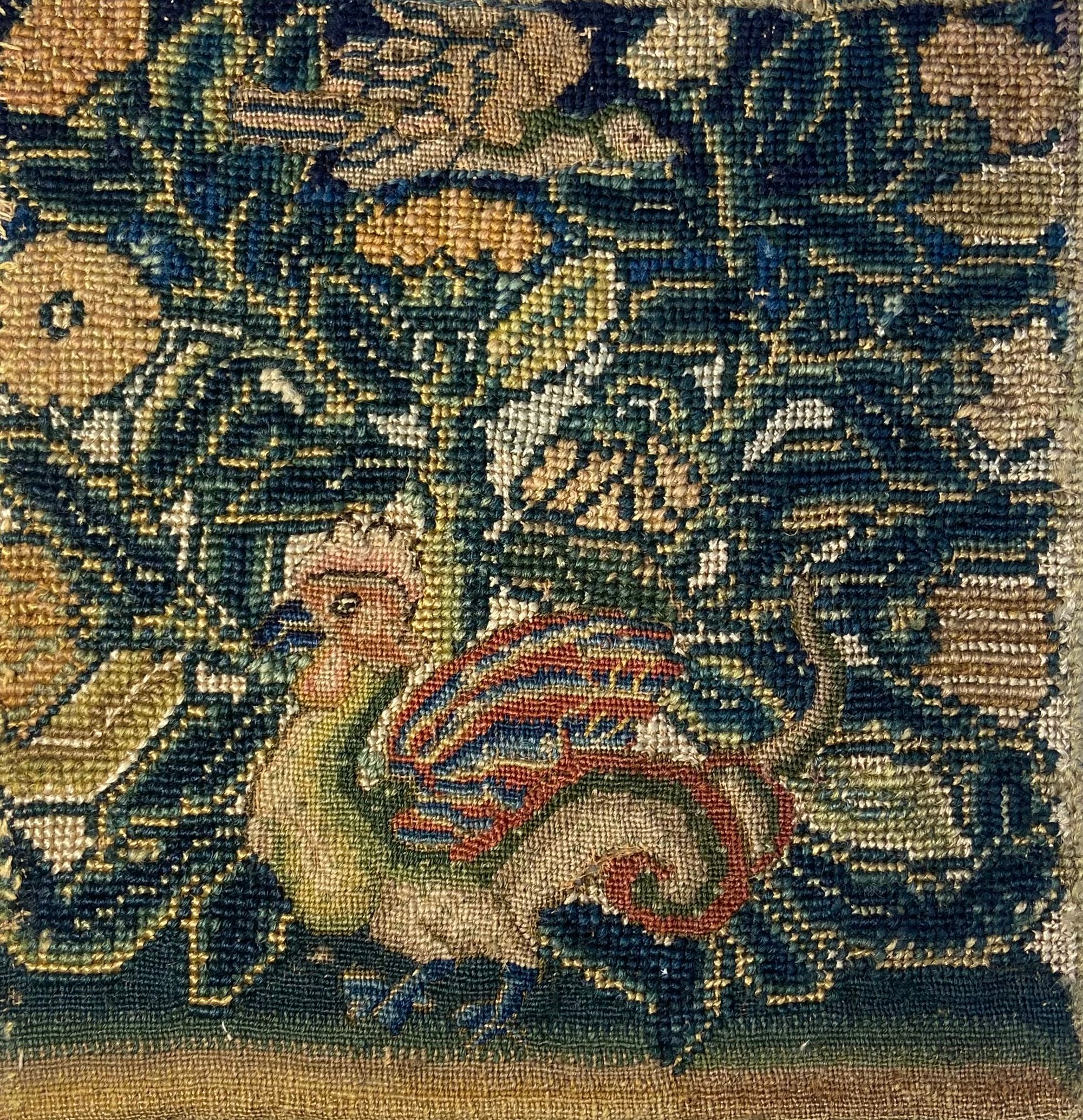 This scarce, early needlework of fine silk and wool, is a wonderful example of the decorative pursuits of courtly