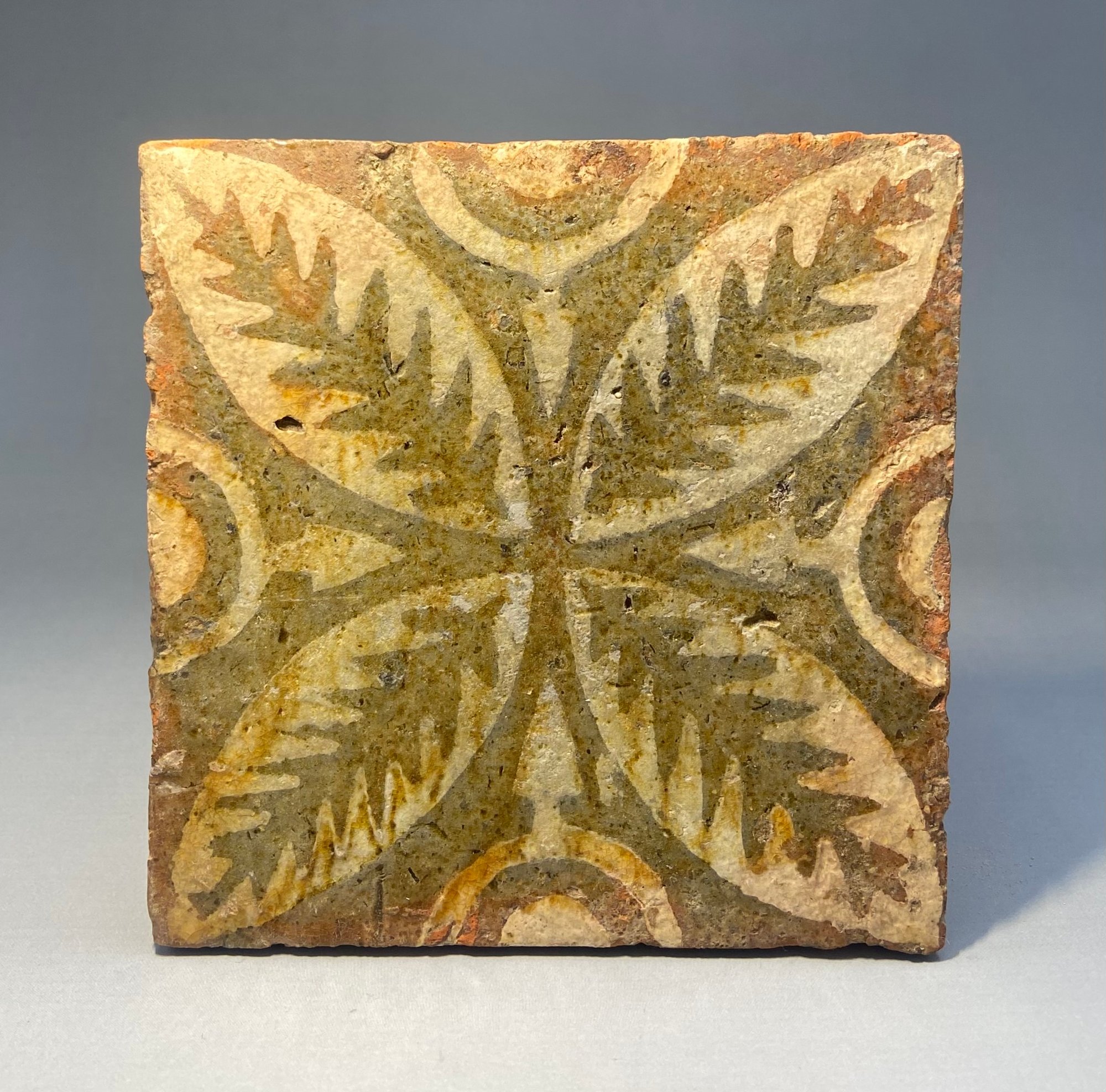 The tile design is one that was popularised in France, with noticeable nuances through the thirteenth and fourteenth century, which also filtered down to the English tile repertoire.