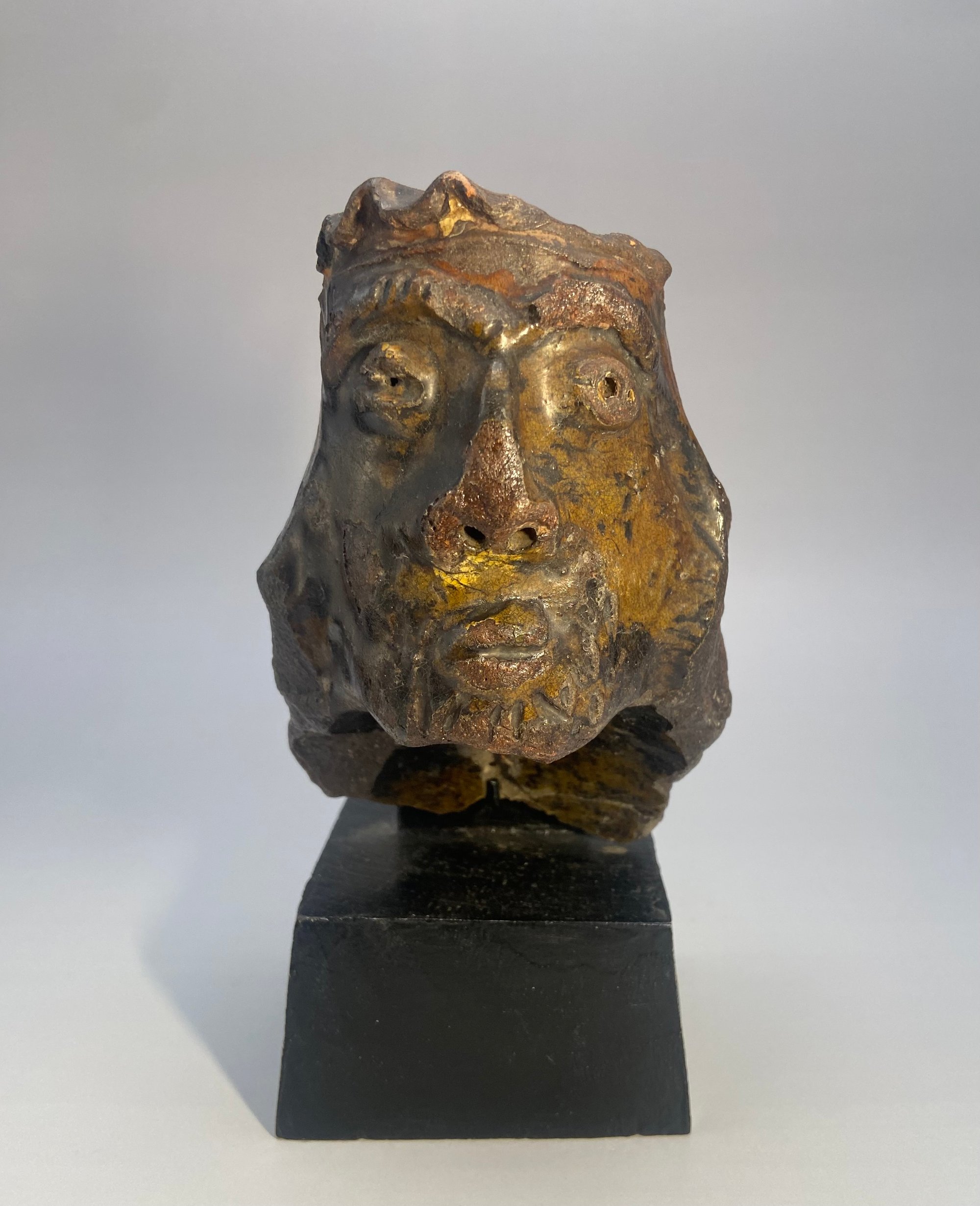 Surviving examples such as this one, wonderfully modelled as a Kings head, would have adorned a high status building while delighting passers by as they looked up.