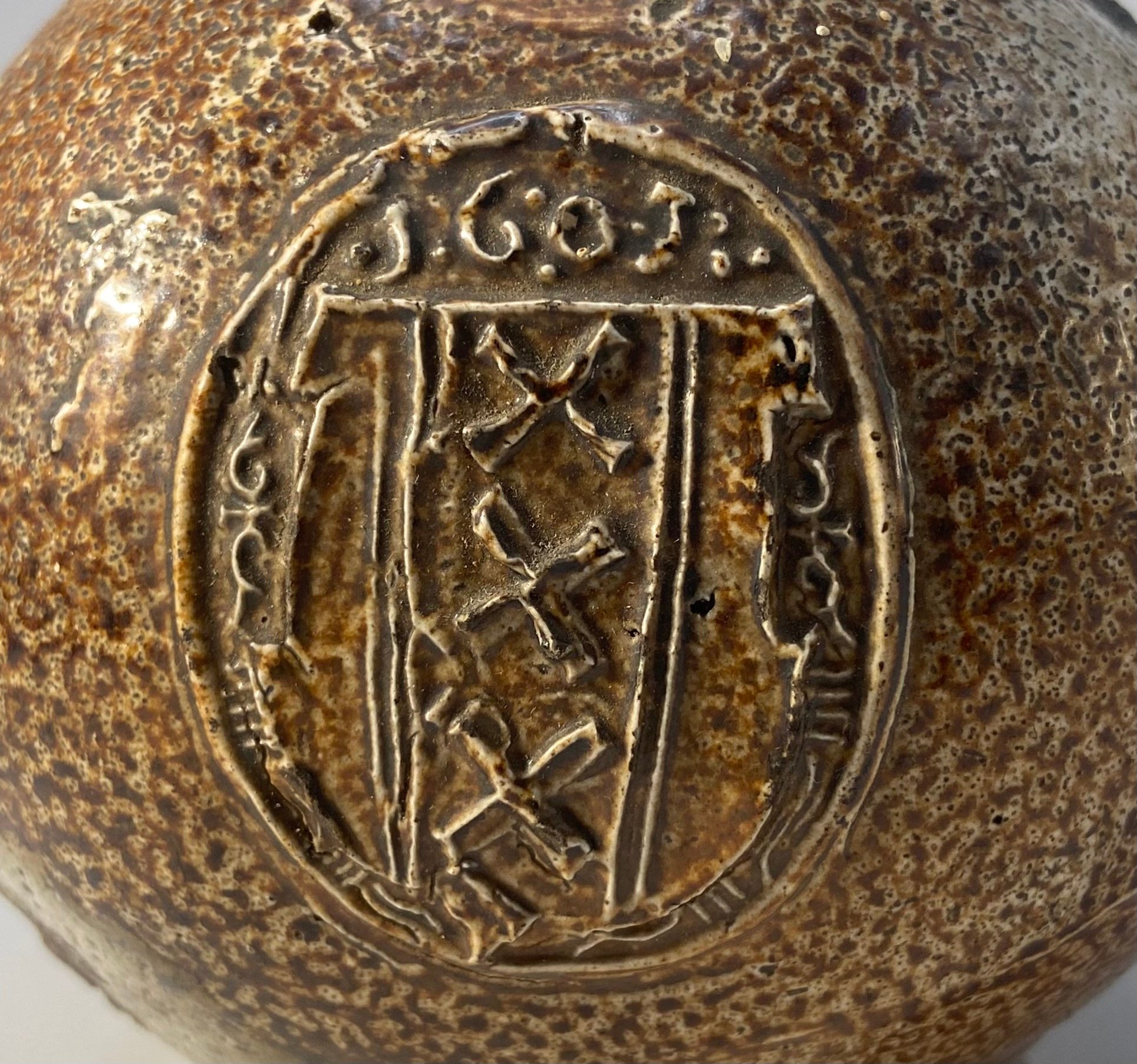 With the importation of these fashionable Rhenish jugs into England at this period so buoyant, one would think the date perhaps a nod to the new king of England.